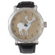Deer Stag Silhouette on Leaf Pattern Background Watch