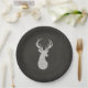 A majestic male deer with antlers graphic art drawing that looks like white chalk on a dark faux blackboard background.