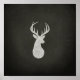 A majestic male deer with antlers graphic art drawing that looks like white chalk on a dark faux blackboard background.
