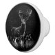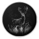 In this black and white drawing, a majestic deer with antlers is depicted standing in the middle of a peaceful and serene natural setting. The deer is drawn with intricate details and a realistic approach, capturing the essence of its wild beauty.