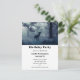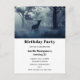 A party invitation postcard with a photo of a regal deer with antlers standing in a dark forest.