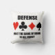 Showcase your wry bridge / duplicate bridge attitude with this throw pillow featuring the four card suits along with the following bridge truism saying: "Defence What The Game Of Bridge Is All About".