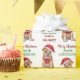 The pattern on this festive Christmas wrapping paper is of a cute Bulldog wearing a red and white Santa Claus hat and a red bow. He looks a bit defiant, but definitely adorable! The image is repeated across the surface, with red and green text that says "Dear Santa, Define NAUGHTY". Your own custom greeting and signature is in red and green, also.