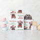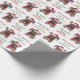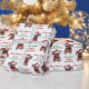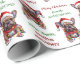 The pattern on this festive Christmas wrapping paper is of a cute French Bulldog wearing a Santa Claus hat. He is tangled up in a string of Christmas tree lights. The image is repeated across the surface, with red and green text that says "Dear Santa, Define NAUGHTY". Your own custom greeting and signature is in red and green, also.