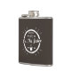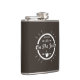 The flask itself is fine. It’s a cheap flask, obviously bought in bulk, however am prepared to overlook that. Given that it is a personalized item, I would have liked to have seen gift boxing instead of the generic packaging. Terrible printing, and/or quality. It’s a cheap, tacky vinyl. It is not cut straight and is also applied in a way that it is overhanging the bottom, causing the glue to catch on items and it will eventually roll and tear, damaging the wrap.