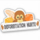 Cute, sad Orangutan sticker with the words Deforestation Hurts.