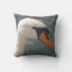 Der grosse Kopf eines weissen Schwans mit Wassertrofpen vor leicht gewelltem dunkelgrauen Wasser ist das Design dieses American MoJo Dekokissens.
