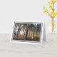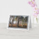 A stunning photograph of forest trees in the renowned Cheshire forest graces this card.