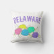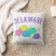 Decorative throw pillow features an original marker illustration of Delaware beach-style salt water taffy.