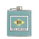 The flask itself is fine. It’s a cheap flask, obviously bought in bulk, however am prepared to overlook that. Given that it is a personalized item, I would have liked to have seen gift boxing instead of the generic packaging. Terrible printing, and/or quality. It’s a cheap, tacky vinyl. It is not cut straight and is also applied in a way that it is overhanging the bottom, causing the glue to catch on items and it will eventually roll and tear, damaging the wrap.