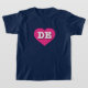 This t-shirt features a vibrant hot pink heart containing the bold, white, upper case letters DE, the official abbreviation for the state of Delaware, the first state. Click "Customise it" to re-size/re-position heart design and/or change background colour.
