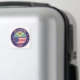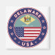 Badge of Delaware with flag of Delaware and flag of USA colors, rounded shape.