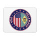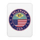 Badge of Delaware with flag of Delaware and flag of USA colours, rounded shape.