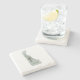 The coasters are gorgeous, a quality feel and heavy weight. They look like a precious archeological find. A rustic stone juxtaposed with a modern floral black and white print. I like the way the print goes slightly imperfect on the cut stone edges giving them a kind-of natural beauty.