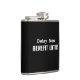 The flask itself is fine. It’s a cheap flask, obviously bought in bulk, however am prepared to overlook that. Given that it is a personalized item, I would have liked to have seen gift boxing instead of the generic packaging. Terrible printing, and/or quality. It’s a cheap, tacky vinyl. It is not cut straight and is also applied in a way that it is overhanging the bottom, causing the glue to catch on items and it will eventually roll and tear, damaging the wrap.