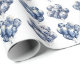 watercolor painting of a bunch of balloons decorated in beautiful Delft Blue designs