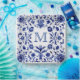 Delft blue design monogram paper plate