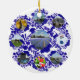 Delft Blue Delftware Vintage Style Holland Ornament. Old Delftware/ Dutch Delft Blue old style pattern with 9 fully customisable Holland pictures, change and add your own images! Holland scenes are: flower field landscape with windmill, windmills, Amsterdam canal, Dutch snack bitterbal with flag, sailing boat in lake, tulip bouquet, blue bicycle, cow and Dutch wooden shoes clogs. This beautiful Holland souvenir gift is fully customisable!