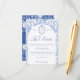 Delft blue floral wedding details card, designed in a refined blend of chinoiserie and French toile de Jouy style. The soft botanical illustrations frame an arched layout featuring an elegant wedding crest monogram, perfect for couples who love vintage, historic, and European-inspired aesthetics. Classic script typography pairs beautifully with the ceramic-blue palette, making this design an effortless nod to the tradition of “something blue.” Fully customizable with your names, date, and location, it’s an exquisite choice for any romantic or sophisticated wedding theme.