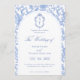 Delft Blue Floral Chinoiserie Monogram Wedding Invitation