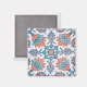 An elegant, vintage floral design in blue, red and white of cornflowers reproduced from an antique handpainted Delft poly tile.