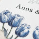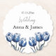 Add a touch of refined elegance to your reception tables with this customisable Delft Blue Tulip Paper Coaster. The unique scalloped edge and classic blue and white floral design make this coaster a beautiful and functional addition to your wedding decor. Personalise it with the wedding date 10.16.20XX, the word Wedding, or the couple's names Anna & James for a disposable detail that guests will love.