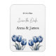 Ensure your guests mark their calendars with this elegant customisable Delft Blue Tulip Save the Date Wedding Magnet. The design features a cluster of classic blue and white watercolor tulips, giving the magnet a refined, European-inspired look that is perfect for any fridge. Personalise it with the couple's names Anna & James, the wedding date 10.16.20XX, or the simple request Save the Date.