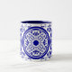 An original design in blue and white with flowers and ornate scrolls. You pick the size and colours.