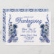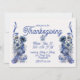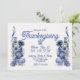 Thanksgiving invitation in delft blue style with pheasants and sunflowers.