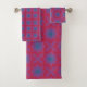 Enjoy this bathroom towel set in different patterns of circles, squares and stars in gradients from the colour of the year 2023 Viva Magenta to Delft. Change the placement of the patterns yourself, by using the 'Edit Design' option.