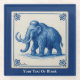A humourous, monotone, blue woolly mammoth (mammathus primigenius) in the style of a Delft tile. Customise by adding your own text.