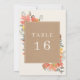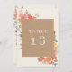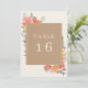Delicate foliage with cardstock inspired background for off white text which includes table number.