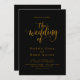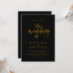 This elegant black-and-gold wedding invitation is perfect for a modern wedding. The simple design features elegant gold calligraphy on a black background. The invitation card includes the wedding details on the back instead of paying for a separate enclosure card.