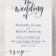 Delicate Black and White Script Simple Wedding All In One Invitation
