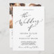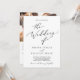 This delicate black calligraphy proposal story wedding invitation is perfect for a modern wedding. The romantic minimalist design features lovely and elegant black typography on a white background with a clean and simple look. Personalise your invitation with 3 engagement photos on the back and the story of how you met, your proposal story, or details for your wedding. Include an optional web address were your guests can get more details or RSVP online.