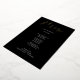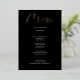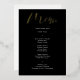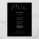 This modern black wedding menu card features modern gold foil calligraphy and simple typography for your wedding menu. Perfect for a modern yet classic wedding or other event, wedding with a black and white colour theme or elegant wedding. On the back is room for your names and wedding date - or simply delete the text on the back.