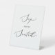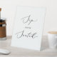 This delicate black calligraphy sip and be seated pedestal sign is perfect for a modern wedding. The romantic minimalist design features lovely and elegant black typography on a white background with a clean and simple look.