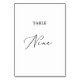 This delicate black calligraphy table nine table number is perfect for a modern wedding. The romantic minimalist design features lovely and elegant black typography on a white background with a clean and simple look. The card prints on the front and back (double-sided). Other table numbers in the collection are sold separately.