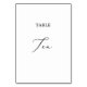 This delicate black calligraphy table ten table number is perfect for a modern wedding. The romantic minimalist design features lovely and elegant black typography on a white background with a clean and simple look. The card prints on the front and back (double-sided). Other table numbers in the collection are sold separately.