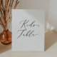 This delicate black calligraphy wedding kids table pedestal sign is perfect for a modern wedding. The romantic minimalist design features lovely and elegant black typography on a white background with a clean and simple look.