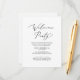 This delicate black calligraphy wedding welcome party enclosure card is perfect for a modern wedding. The romantic minimalist design features lovely and elegant black typography on a white background with a clean and simple look.