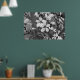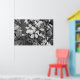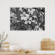 This pretty print features a black & white photo of delicate blossoms.