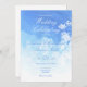 A beautifully subtle design with blue watercolour background fading to white, and barely-there white foliage. This invitation is perfect with simple blue and white text. The rear of this invite is blank.