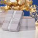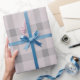 Delicate grey and blush pink stripes plaid Christmas holiday wrapping paper.