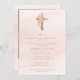Delicate Blush Glitter Christian Cross Wedding Invitation
