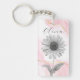 Celebrate her coming-of-age with a floral keepsake she'll cherish! This elegant custom keychain features a hand-drawn black and white daisy over a dreamy blush pink and gold watercolor background. Perfect as a thoughtful giveaway for Quinceañeras, Sweet 16 parties, or even bridesmaid gifts. Personalise it with a name or meaningful word to create a truly special favour. Stylish, feminine, and full of heart.