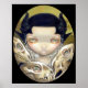 A delicate yet very strange beauty - wearing the dark headdress of a mediaeval noblewoman - surrounded by some seriously strange skulls! There is a cat skull, a caiman skull, and a goat skull. This is my own original acrylic painting.