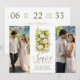 This Save the Date is ideal for weddings seeking a refined and personalized look, perfect for outdoor celebrations or events with a Mediterranean, natural, or sophisticated style. The design offers a clear and attractive visual presentation to announce the wedding date memorably, integrating the two front photographs as central elements, while the botanical and floral elements maintain coherence and refinement throughout the design.