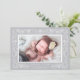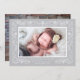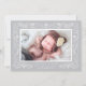An intricate botanical border in soft dove grey and white frames your favourite horizontal newborn photo in this beautiful birth announcement for brand new baby girls. Personalise with your new arrival's name, birth stats and your names beneath the photo. Add a second photo to the back if desired, or remove the sample photo to reveal a pattern of grey and white stripes.