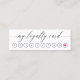 Stylish loyalty punch card with "my loyalty card" written in delicate calligraphy. For a discount on the tenth visit, with a hot pink heart as a marker.